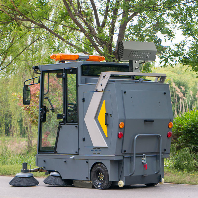 莱特LT-G22型全封闭驾驶式扫地车,配备高压清洗和高压雾炮功能,清扫宽度2200mm,满电工作时间为6-8小时,工作效率:16500㎡/h,采用的是6块150A的铅酸免维护电池。高压雾炮射程可达10米以上,可对作业环境高效的降尘,还可以用于绿植养护和环境消杀。高压水枪可以对地面顽固污渍进行清洁,还可以冲洗路牙石,为绿植浇水,工作之余,还可以用高压水枪清洗车辆。应用场景为:厂区、车间、公园、街道、物业小区、码头、学校、机场等需要大面积清扫的区域区域。